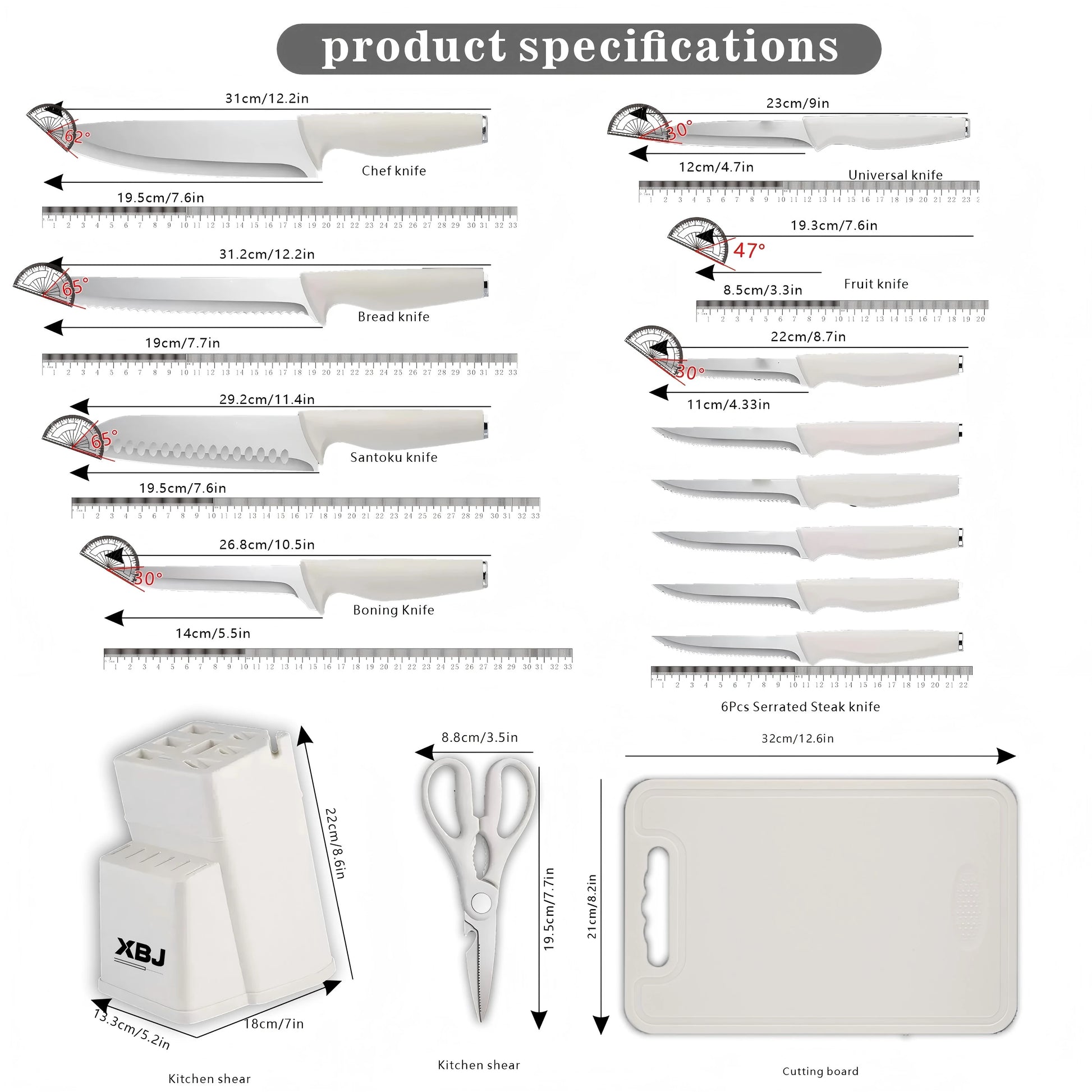 15-piece kitchen stainless steel knife set with knife holder, space-saving storage, full handling of ingredients