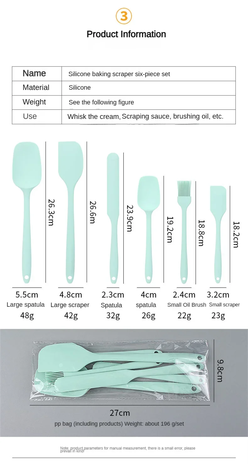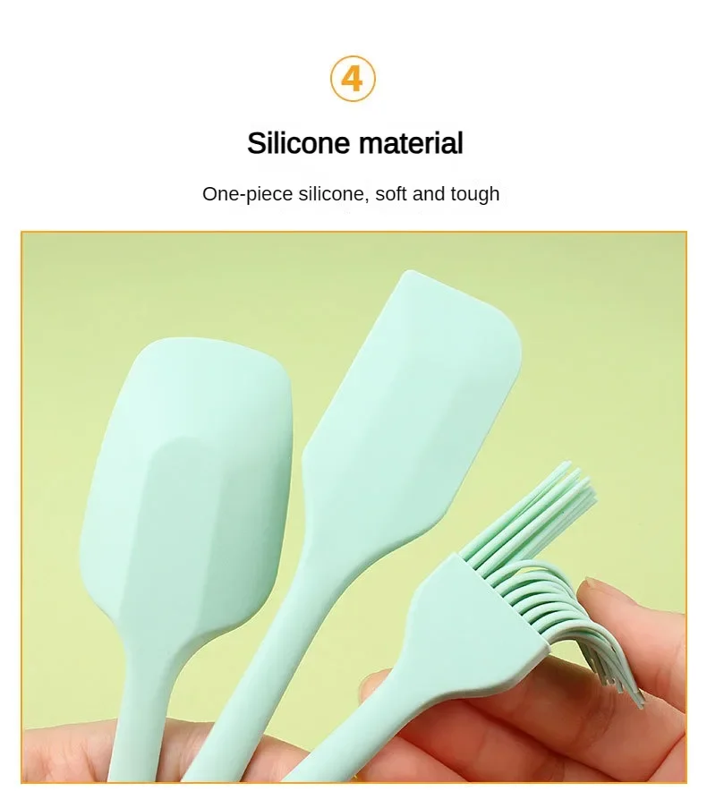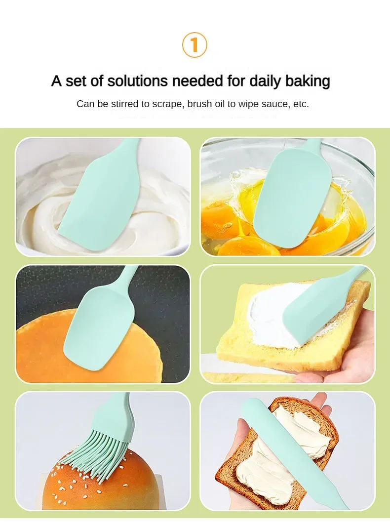 6pc Silicone Spatula set for baking-cake frosting kit with brush, non-stick scrapers & cream spreads | cute kitchen gadgets