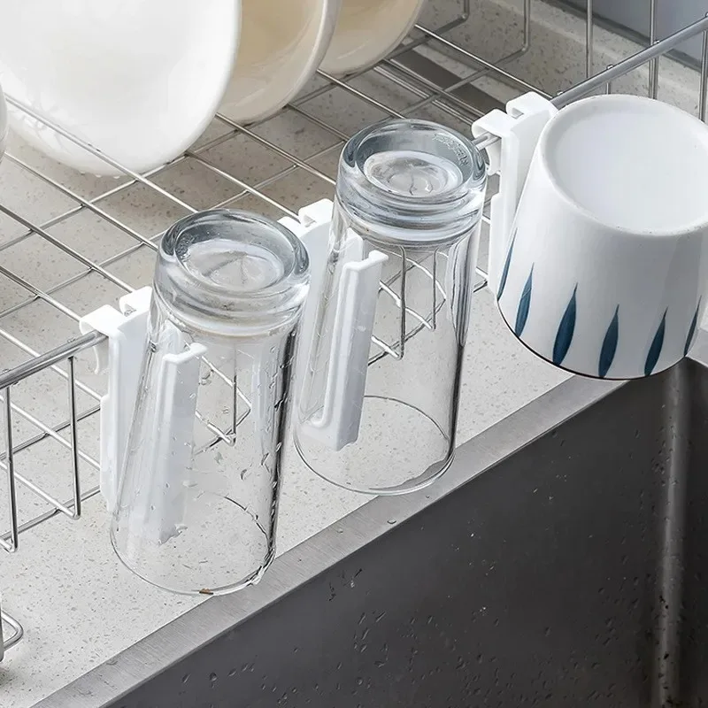 Cup Holder Sink Dish Rack Adjustable Length Plastic Kitchen Organizer Cup Mug Bottle Drying Drainer for Kitchen Bathroom Space S