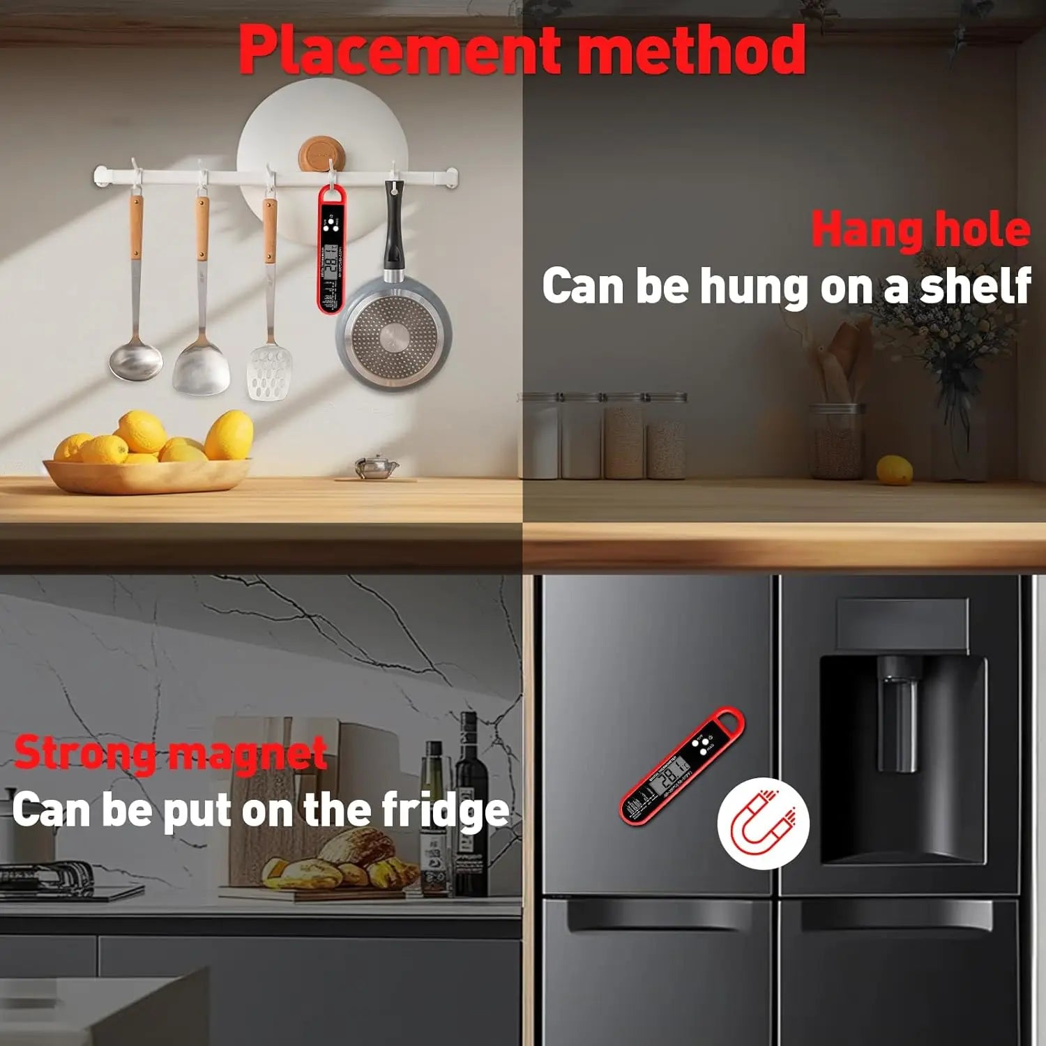 Cooking is the main use scenario. In addition, we can also use it to measure bath water temperature, milk temperature, baby food temperature, etc.
