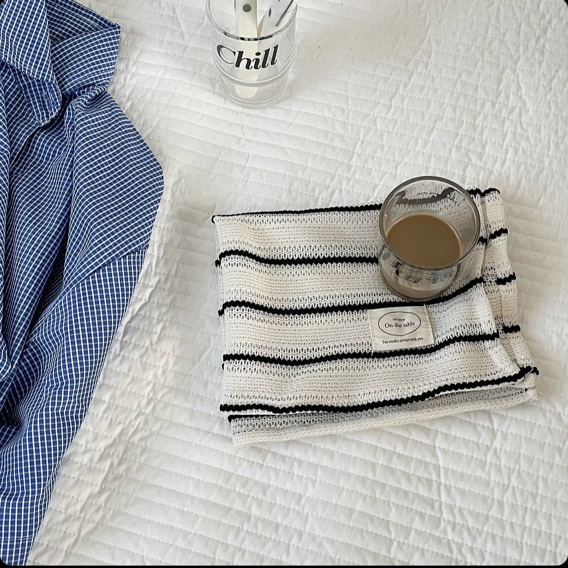 Simple Black White Striped Tablecloth Placemat Dining Table Mat Coaster Food Posing Background Cloth Home Decoration Accessories