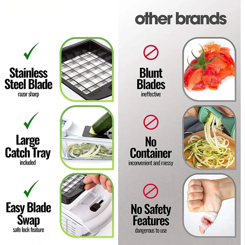 Chops, slices, dices, shreds, juliennes, and grinds with precision