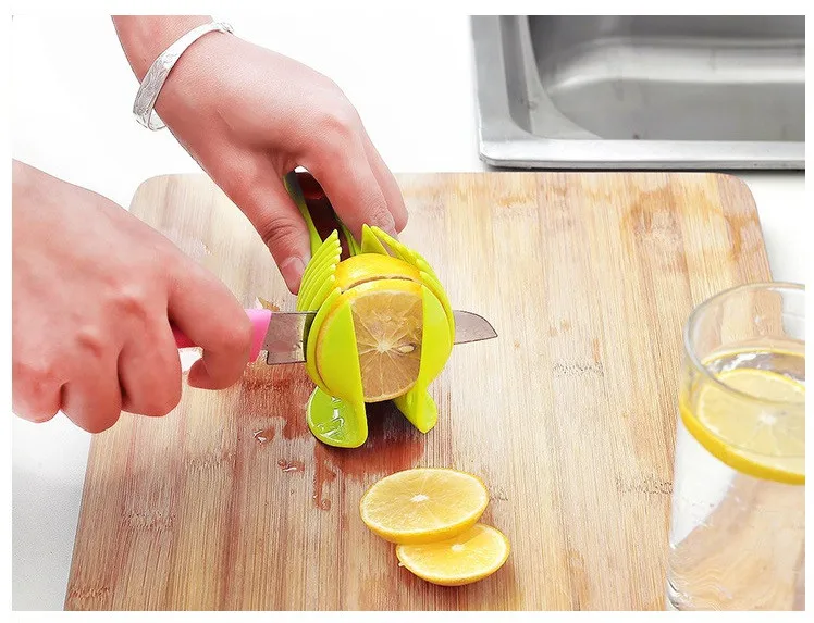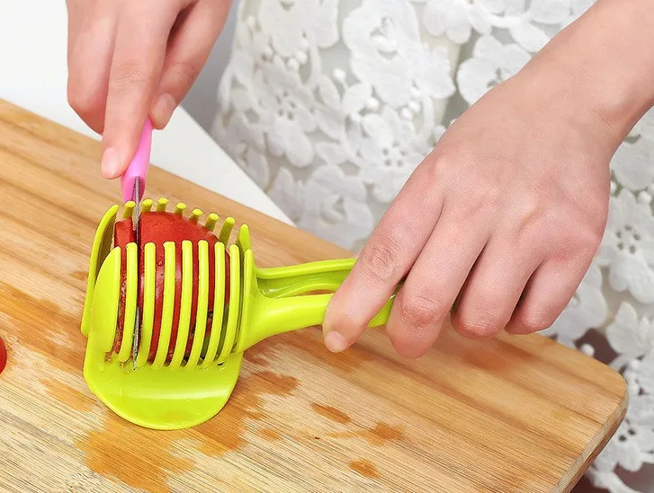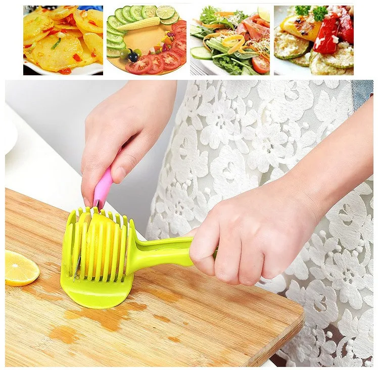 1pc Tomato Slicer Fruits Cutter Stand Utensilios De Cozinha Assistant Lounged Tomato Lemon Shreadders Slicer Random Color
