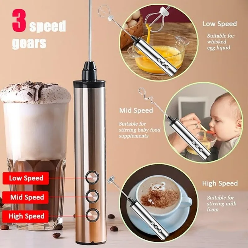 3 in 1 Electric Handheld Milk Frother 3 Adjustable Speeds Mini Hand Mixer Detachable Stainless Steel Whisk Home Kitchen Use Tool