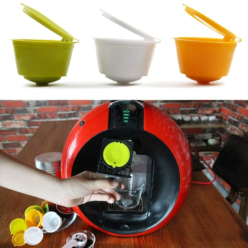 3 Pcs Coffee Capsules Refillable Coffee Capsules Pods Reusable Universal Coffee Filter With Spoon Brush For Dolce Gusto A