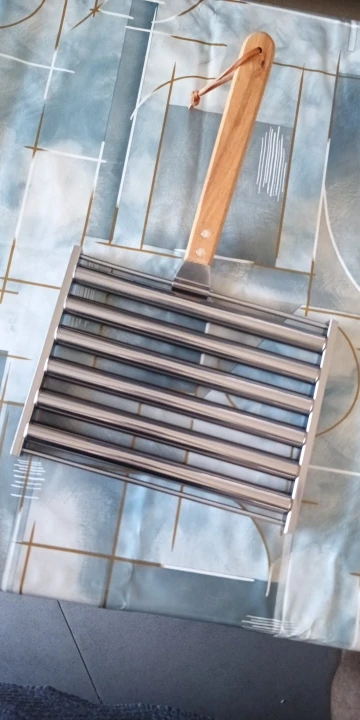 A stainless steel hot dog roller designed for grilling. Perfect for evenly cooking hot dogs and sausages over a grill or open flame. A practical tool for barbecues, camping, and outdoor cooking.