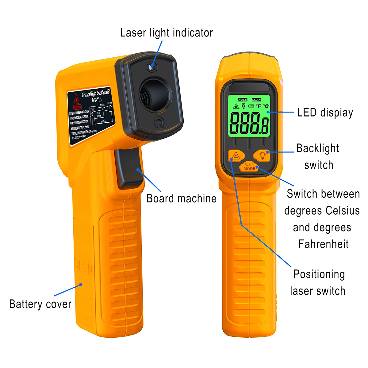 Infrared Thermometer Non-Contact Food Thermometer Gun Household Temperature Thermometer Digital for Kitchen Cooking Tools 530℃