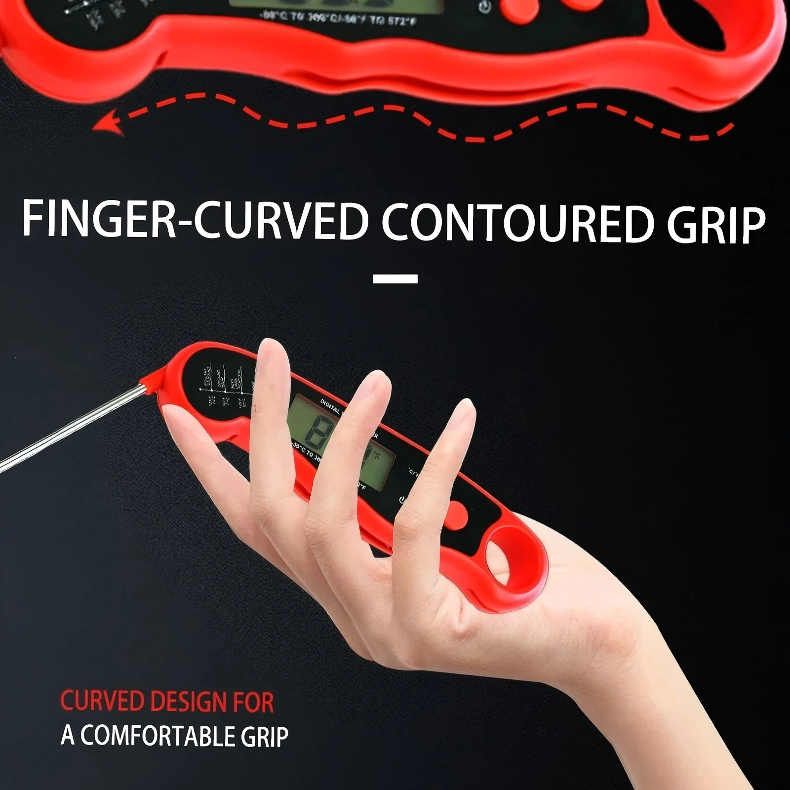 [Reading becomes so simple] - The meat thermometer has a large LED display screen with backlight. You can clearly see the numbers on the monitor. At the same time, clicking the "light" button in extremely dark scenes can help you better obtain the temperature value of your food. If you want to keep the temperature constant, you just need to click the "keep" button to keep the food at its most delicious moment. Convenience in life begins with simple operation - the probe reads when unfolded and closes when restored to its original position. When not in use, it will automatically shut down after 3 minutes, saving power and providing peace of mind. The magnet and hanging hole design of the cooking thermometer will help you store it better. You can hang it directly on the refrigerator or hang it on a hook to make your kitchen cleaner. Wear resistant, waterproof, and undamaged - The shell of the instant meat thermometer is made of high-quality wear-resistant materials, which are sturdy, durable, and drop resistant. You can choose to wipe with a damp towel or rinse directly with tap water (note: not suitable for dishwashers) without worrying about damage.