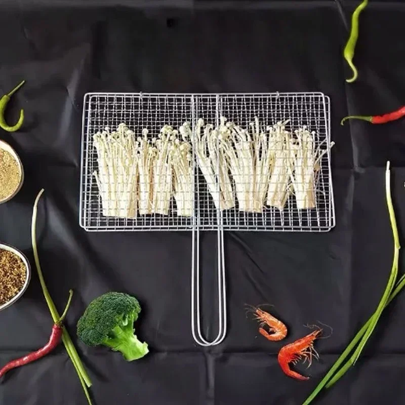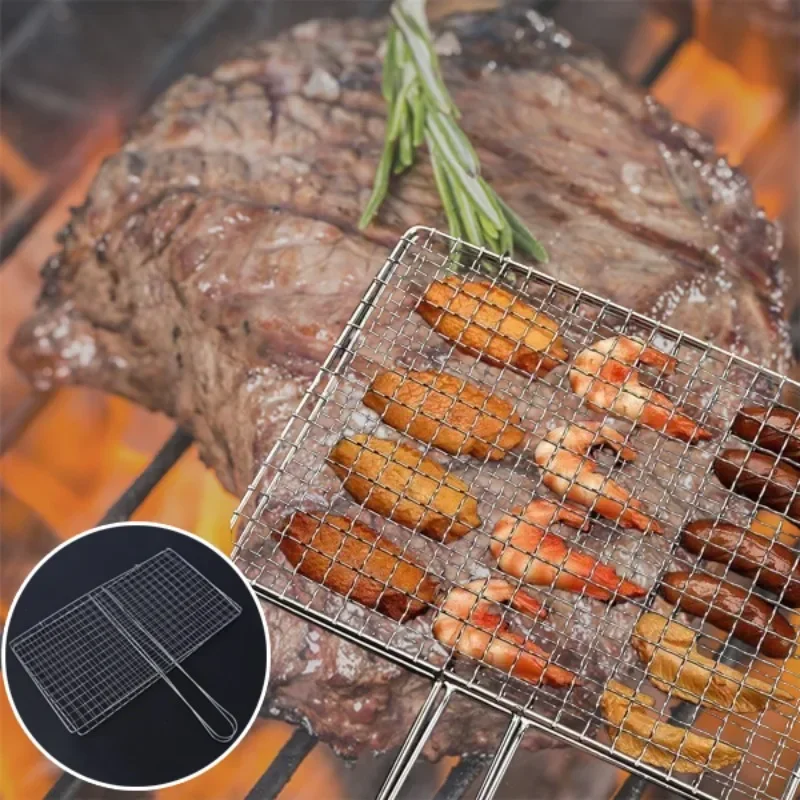 Stainless Steel Barbecue Grilling Basket Non Stick Fish Vegetable Steak Picnic Party Barbecue Gadget Picnic Party BBQ Rack Mesh