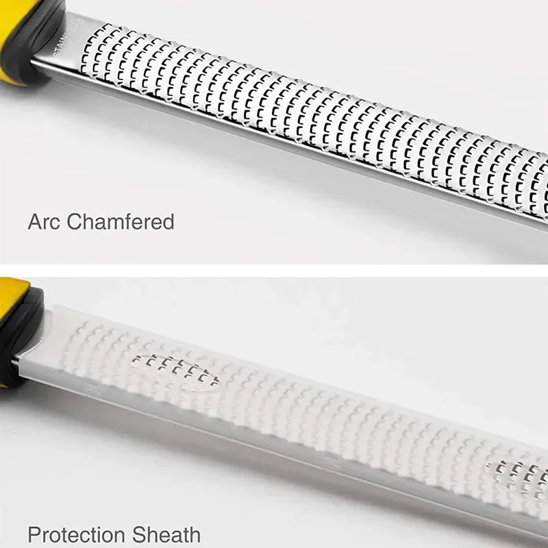 EFFORTLESS & SAFE - The blades of this cheese grater is designed with special square blades and processed with photo-etching technology. The tough body with large size silicone handle makes it safer and effortless while grating. It is a better choice of grater and zester for kitchen tools