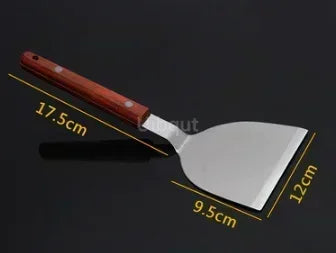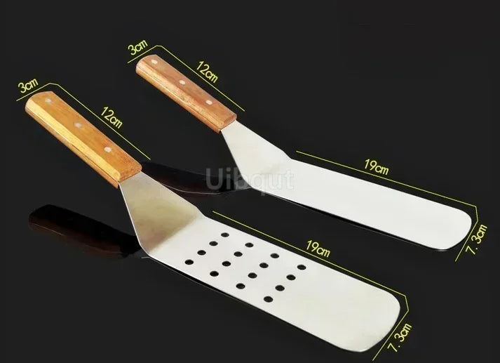 Stainless Steel Steak Fried Shovel Spatula Pizza peel Grasping Cutter Spade Pastry BBQ Tools Wooden Rubber Handle Kitchen turner