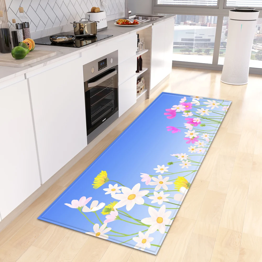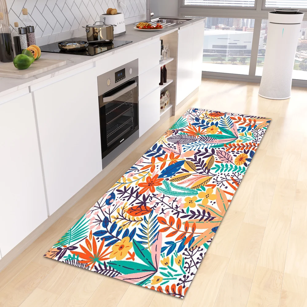 VIKAMA Green tropical leaves Kitchen Mat Entrance Doormat Non-slip Washable Kitchen Carpet Living Room Hallway Rugs Bedside Rugs